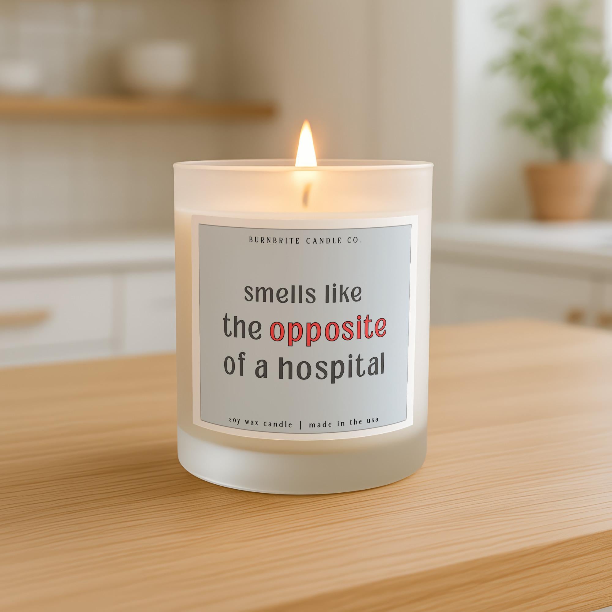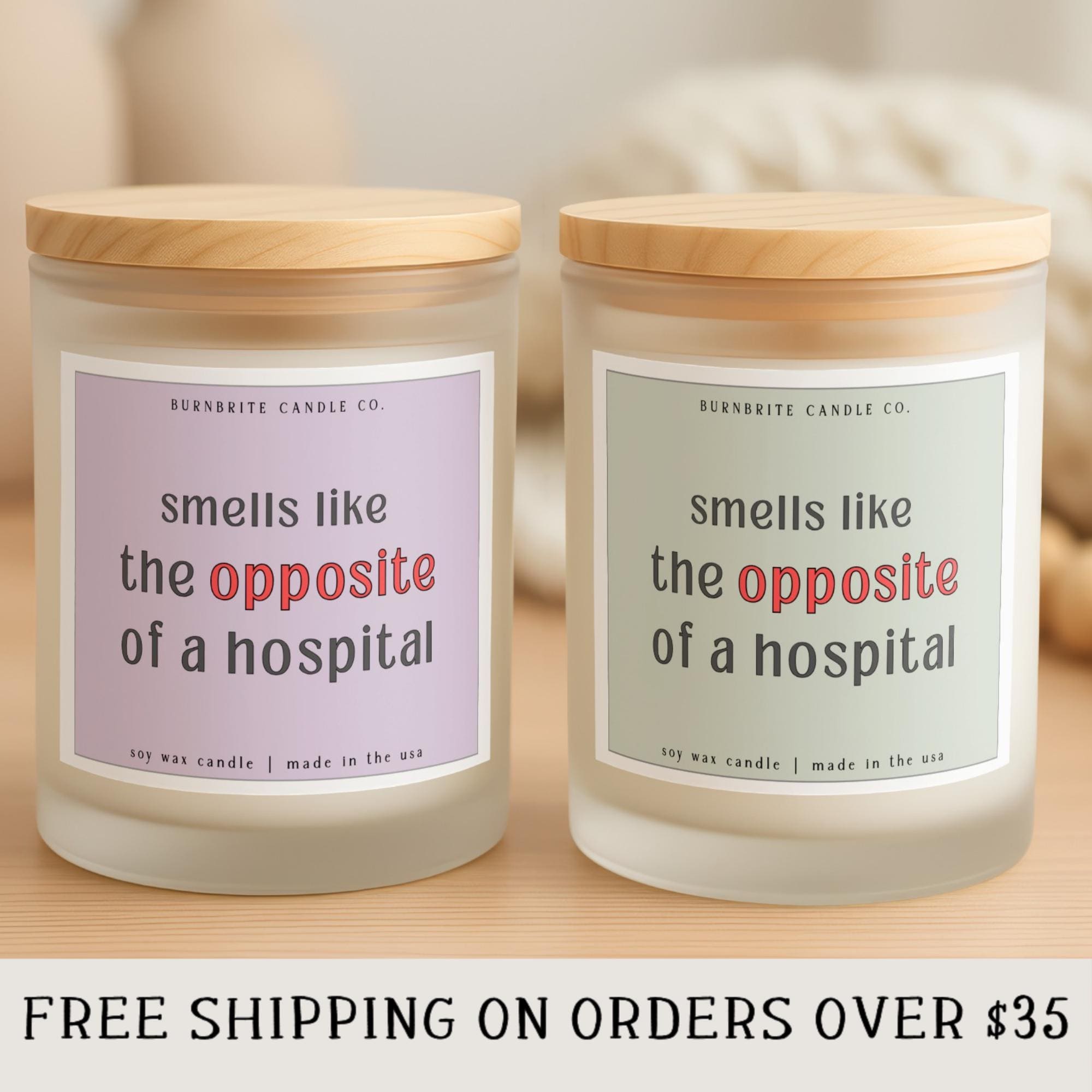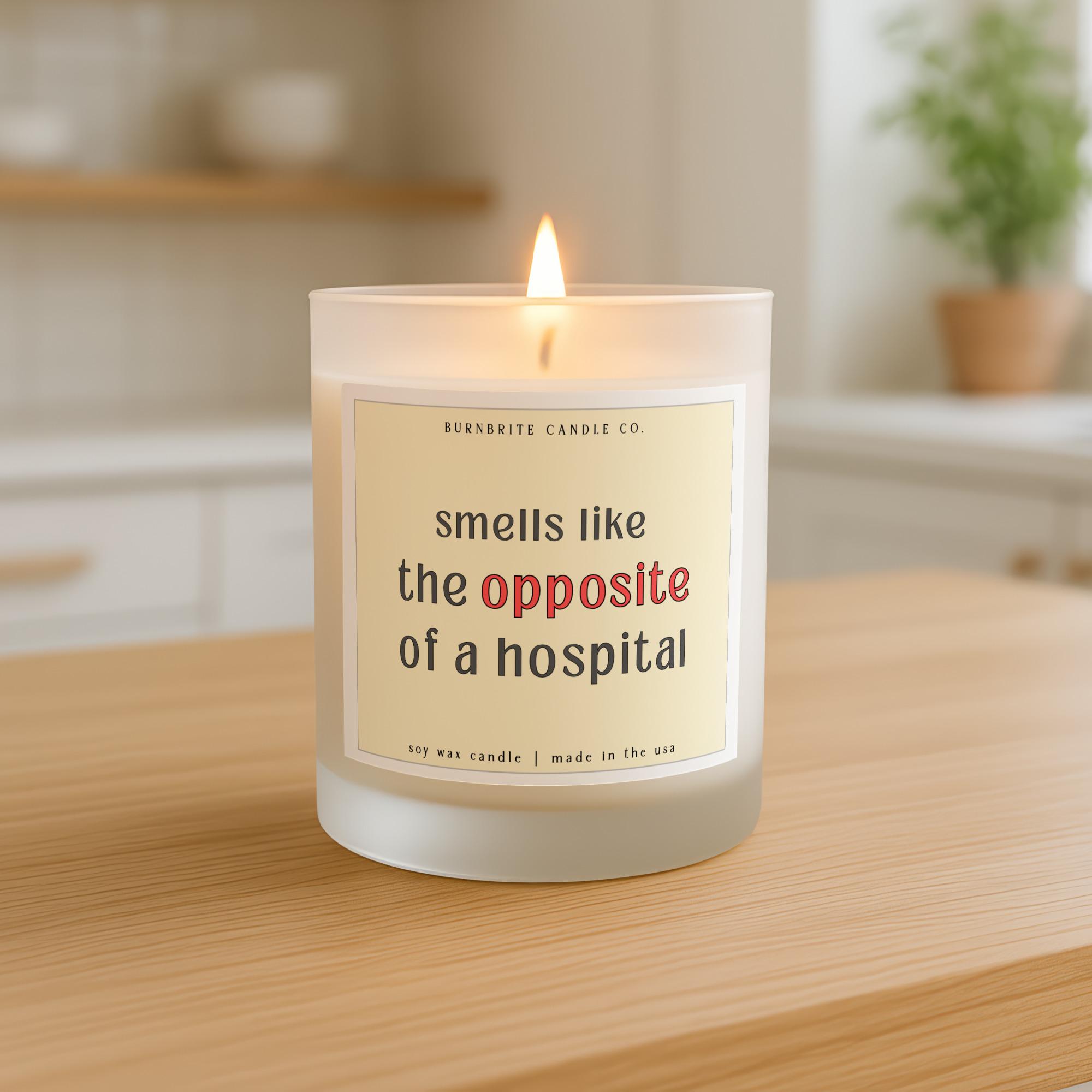 Smells Like The Opposite Of A Hospital Scented Candle | Funny Nurse Gift Doctor Appreciation Medical Worker Present | Soy Wax Cozy Home