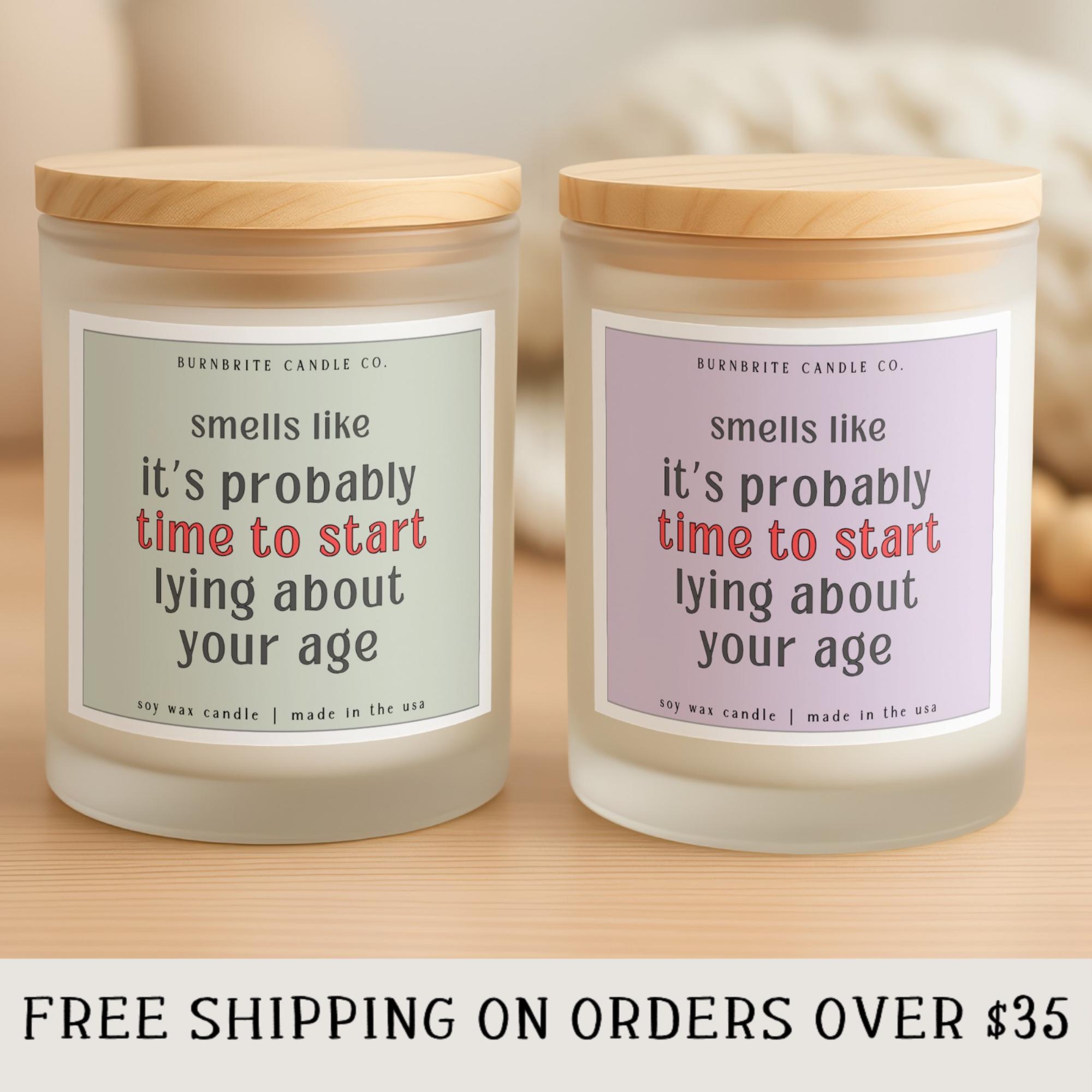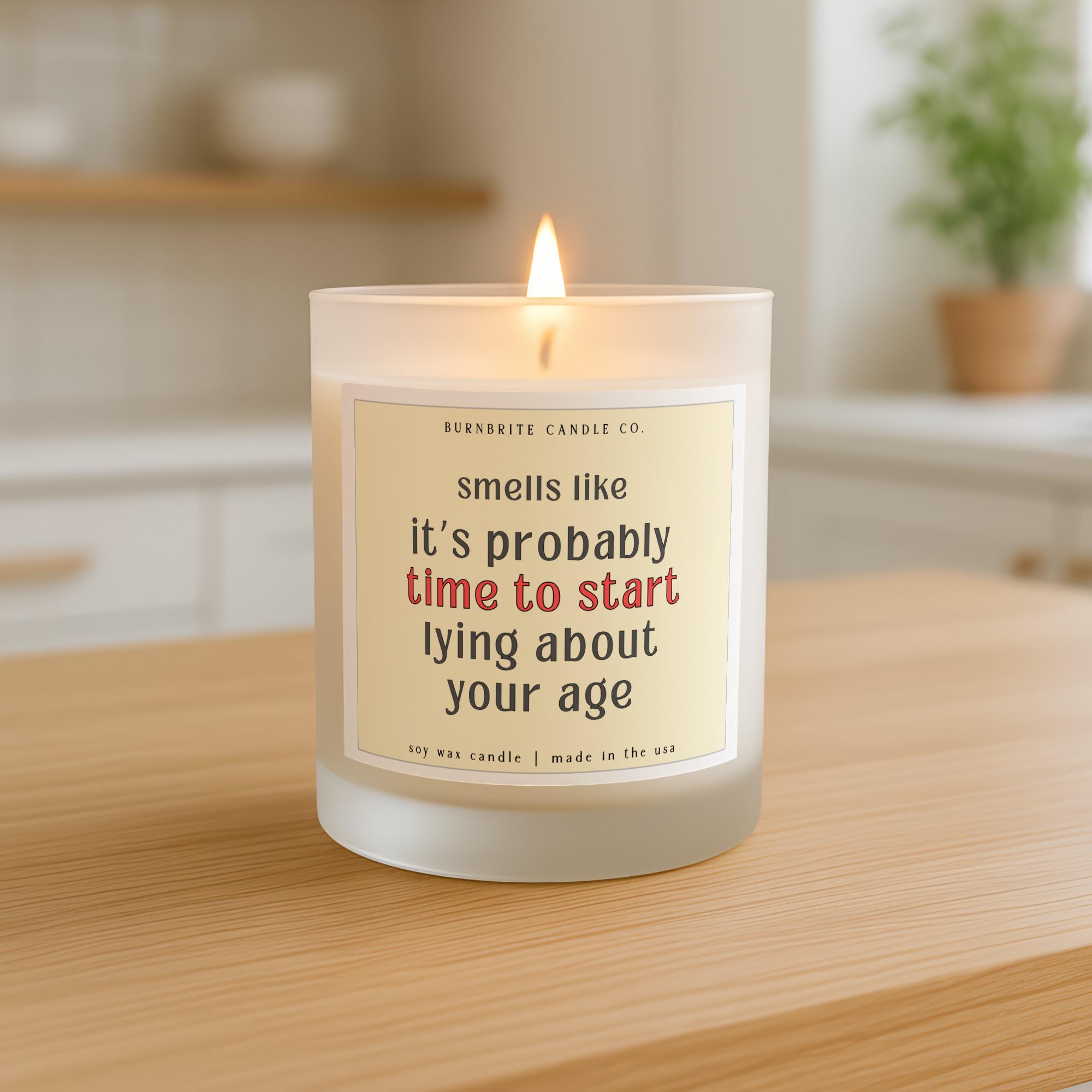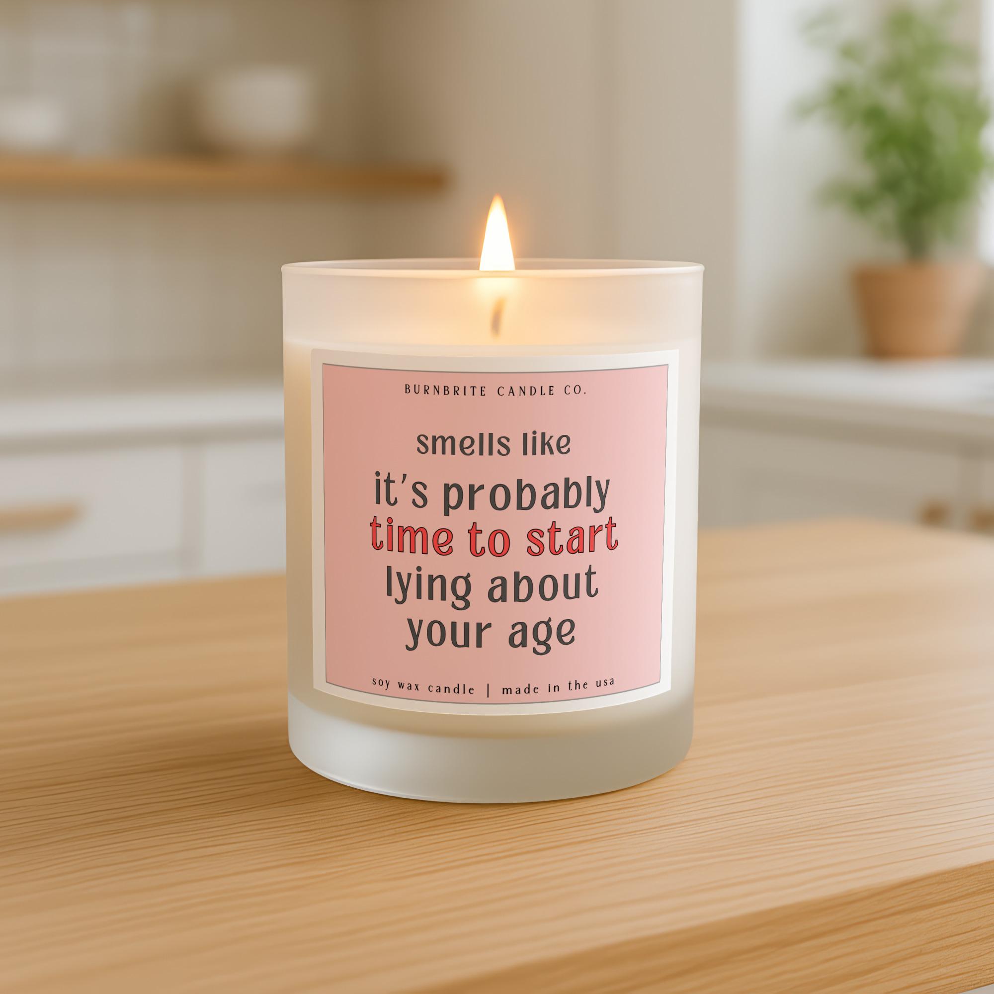 Funny Birthday Candle, 'Smells Like Time To Lie About Your Age' Scented Candle, Witty Gag Gift for Her, Milestone Birthday Soy Wax Candle
