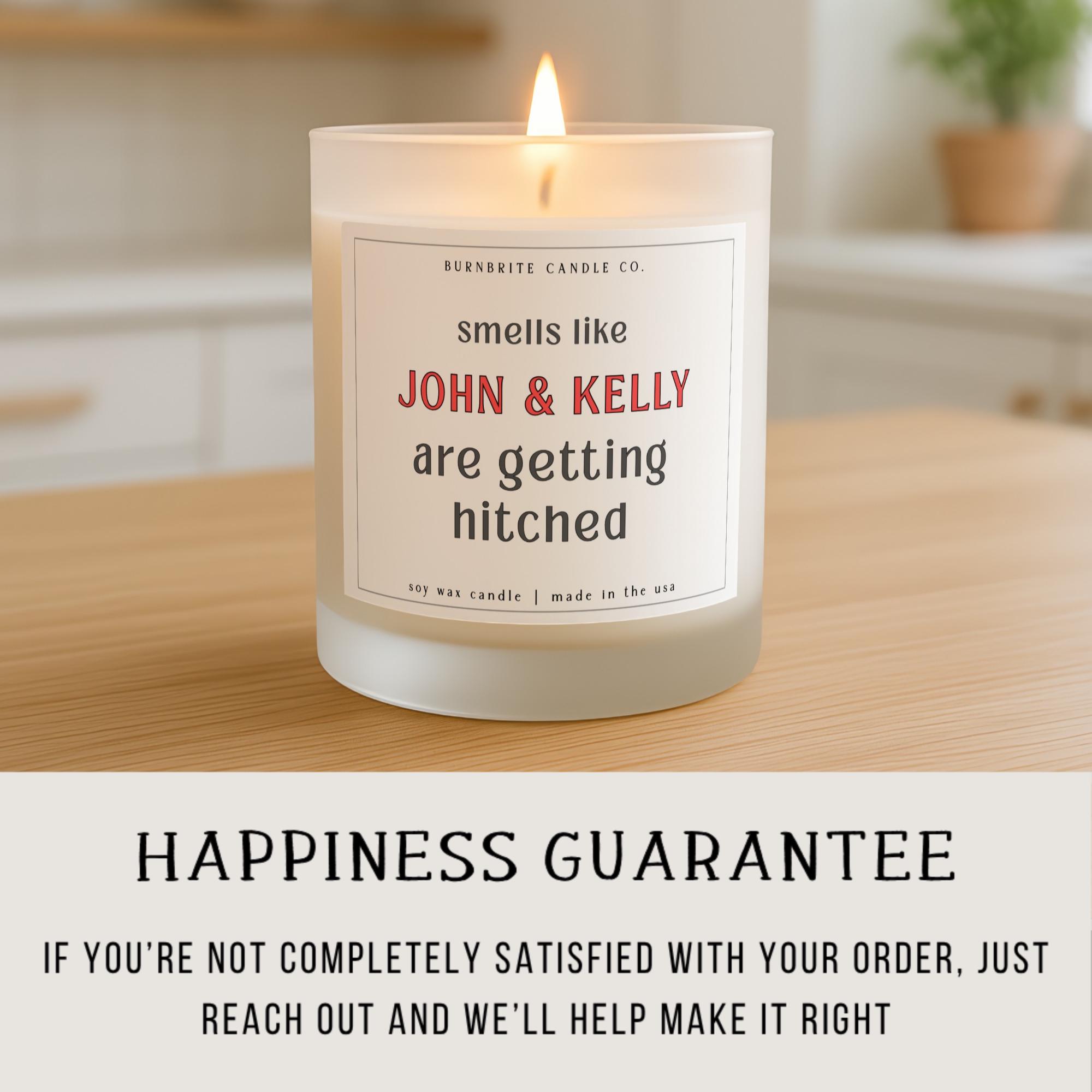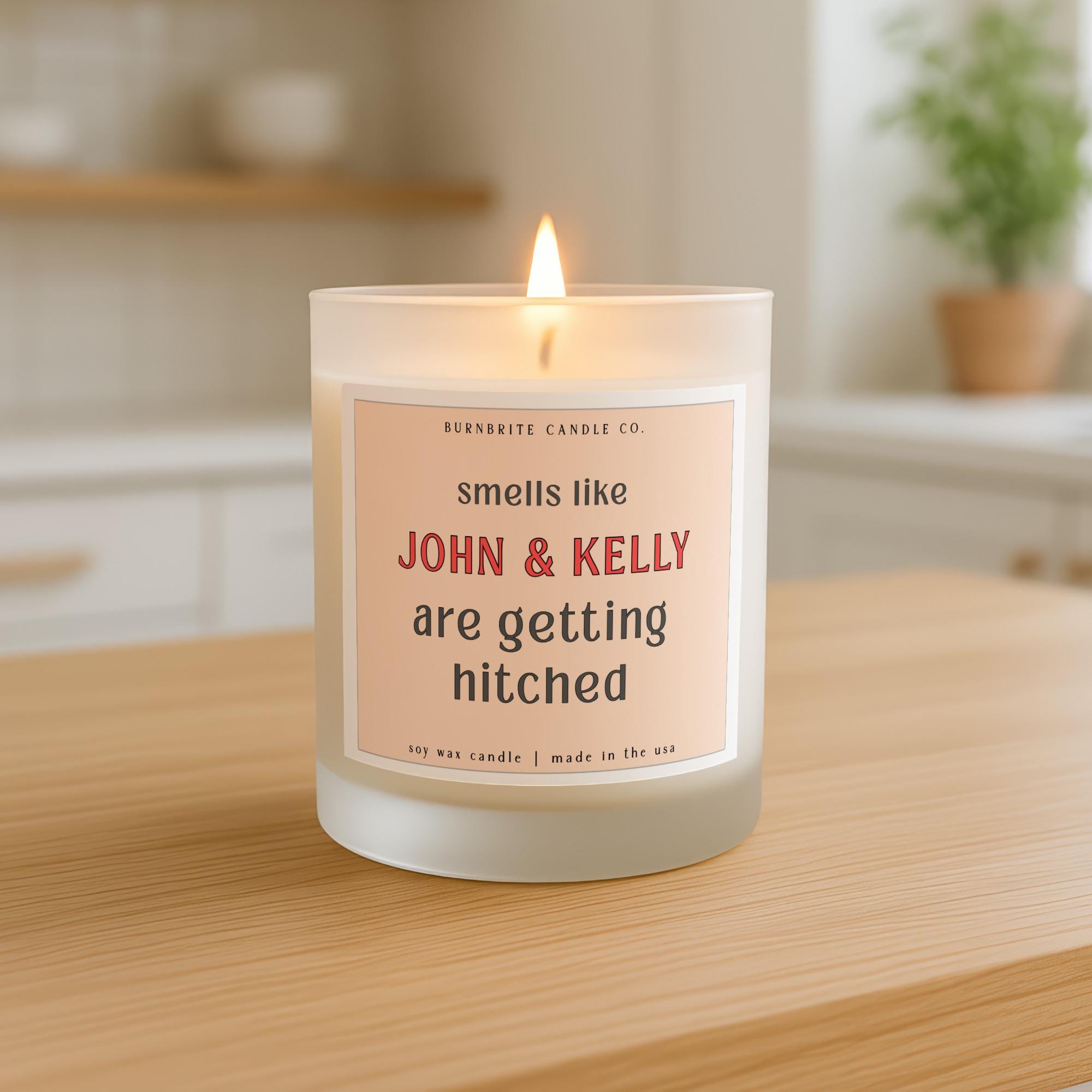 Personalized Engagement Candle | Smells Like Getting Hitched Custom Couple Gift | Bridal Shower Scented Candle for New Couple | Wedding Gift