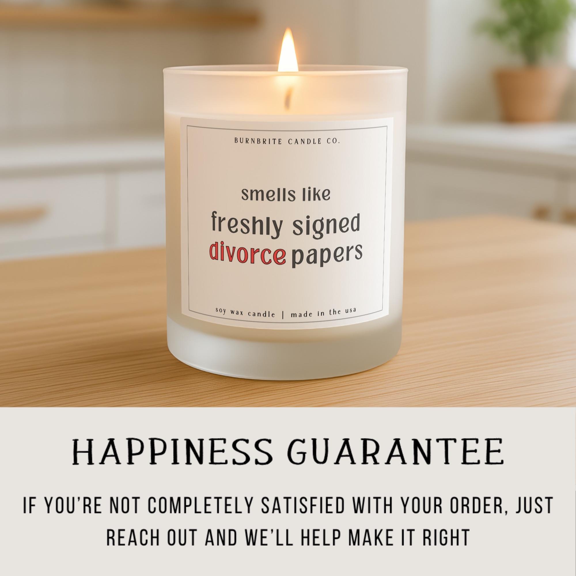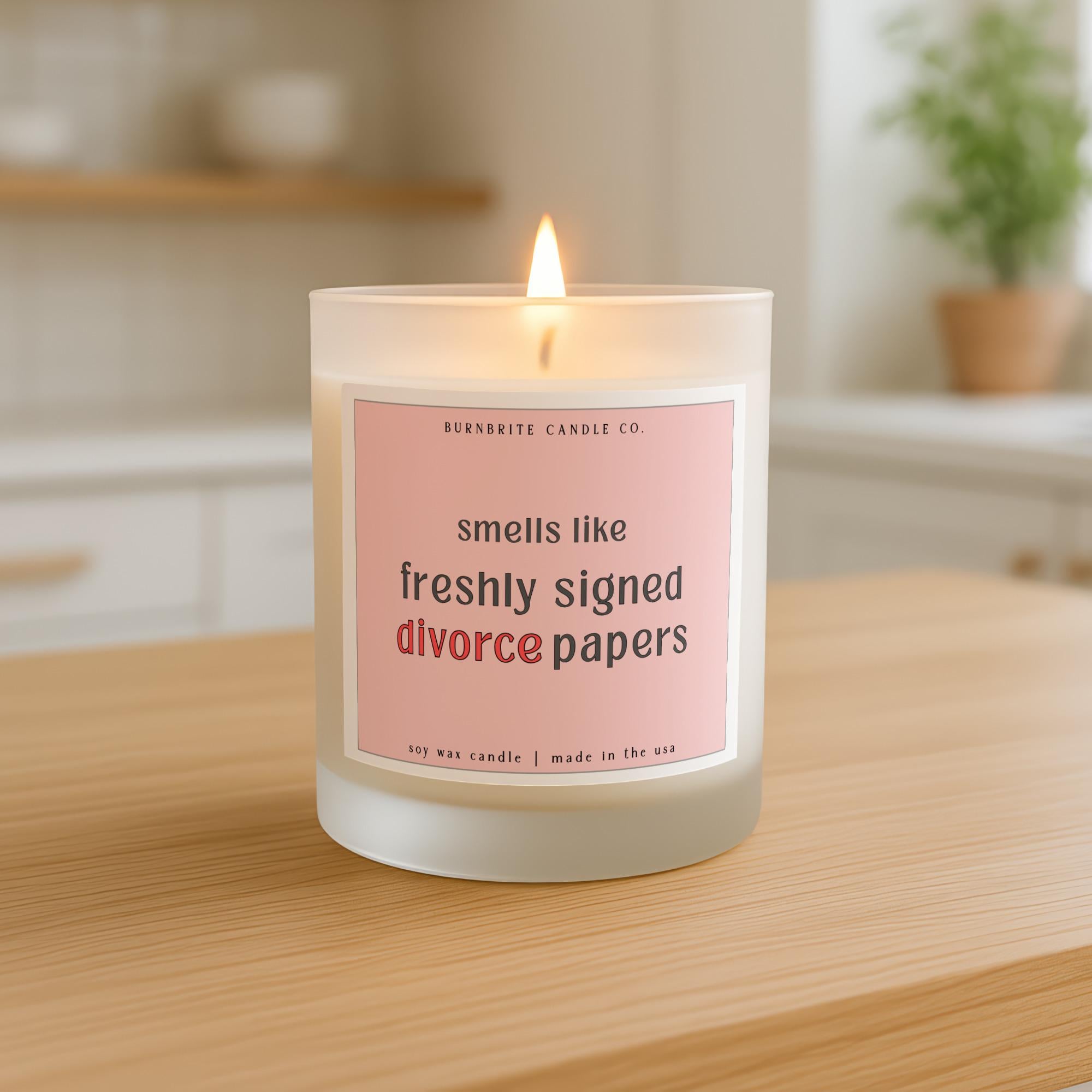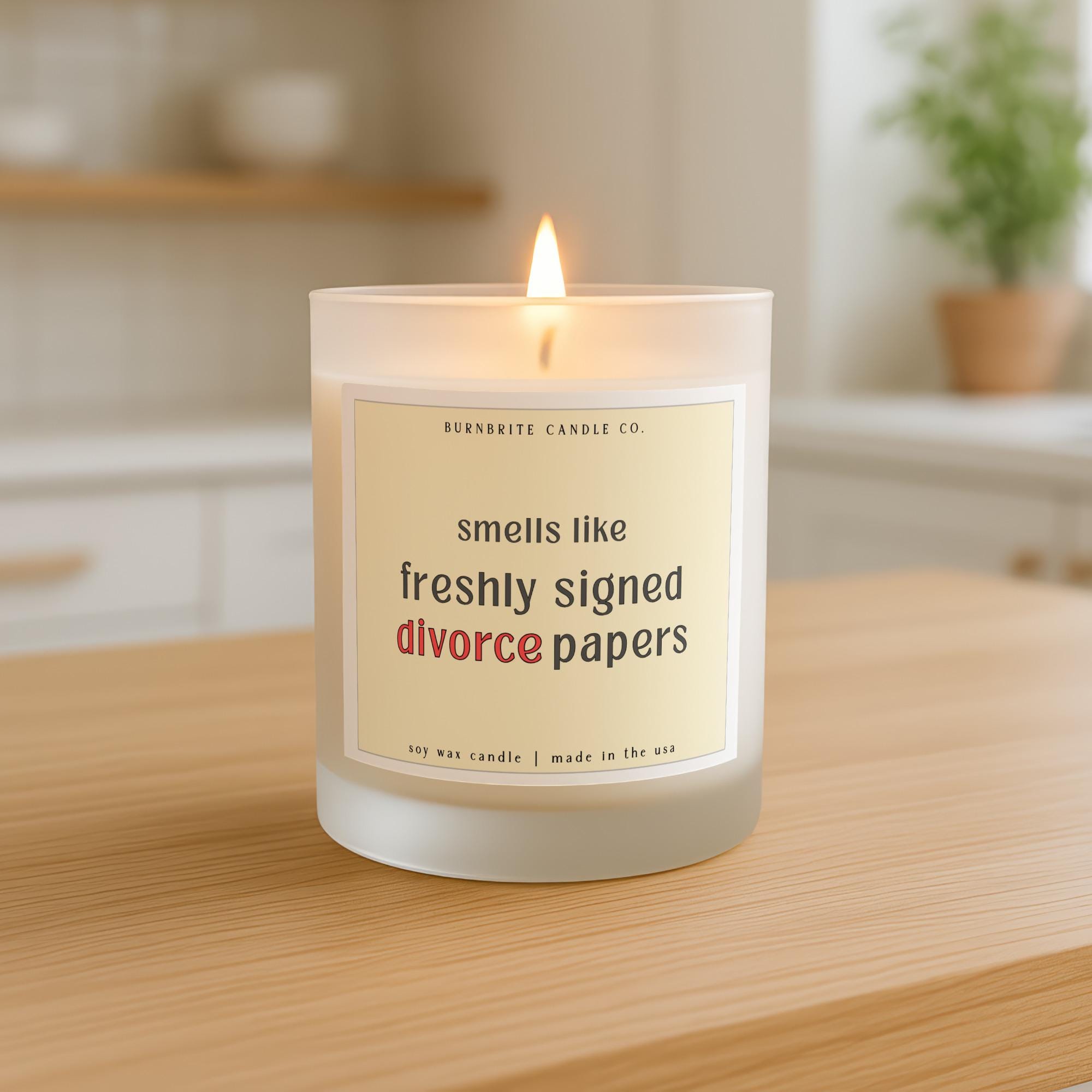 Smells Like Freshly Signed Divorce Papers Scented Candle | Funny Divorce Gag Gift | Breakup Humor Soy Wax Candle