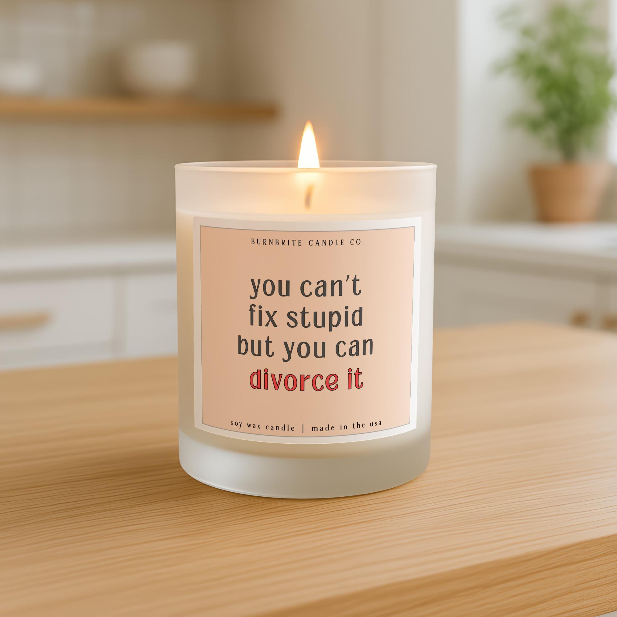 Funny Divorce Gift Scented Candle | You Can't Fix Stupid But You Can Divorce It Soy Wax Candle for Her, Humorous New Beginning Breakup