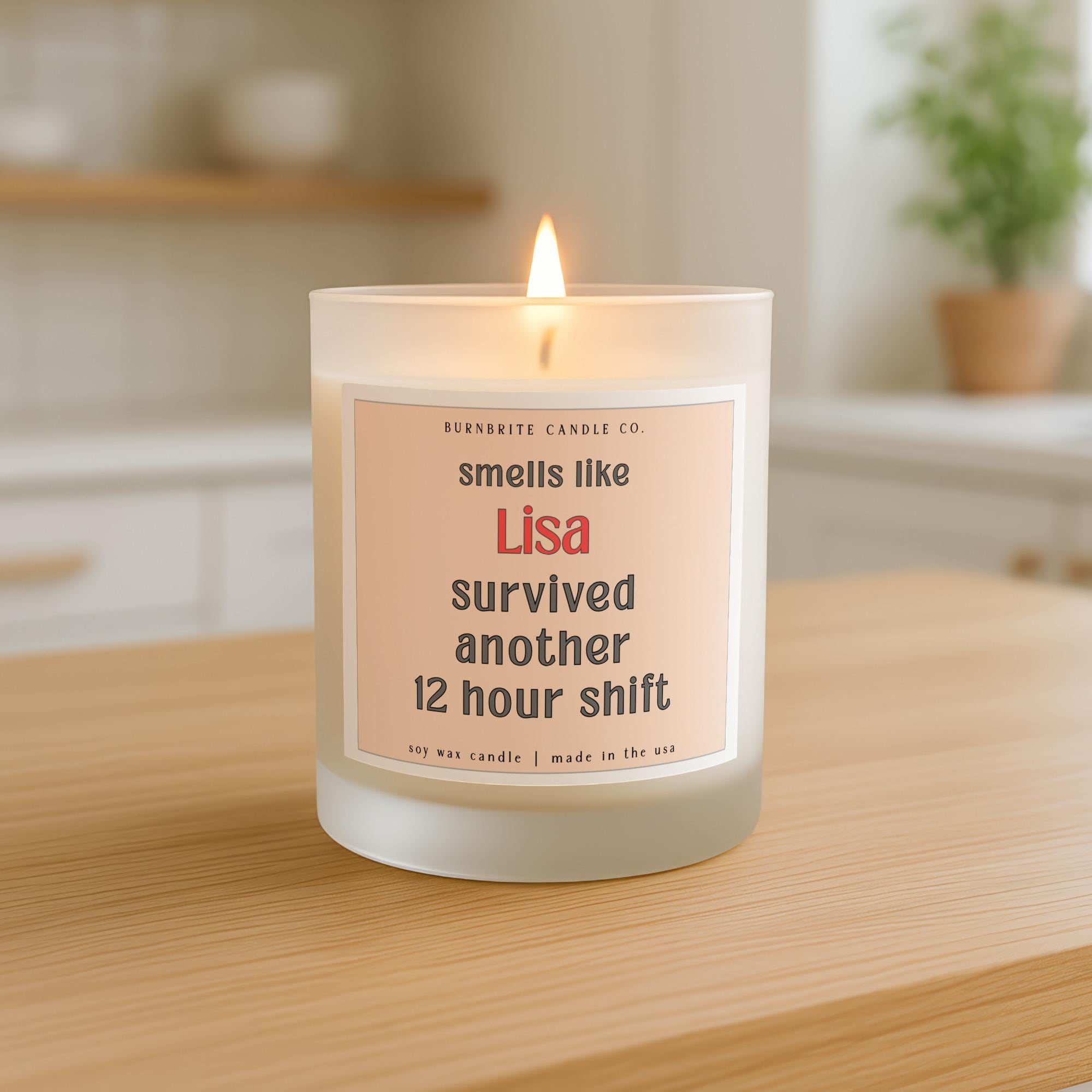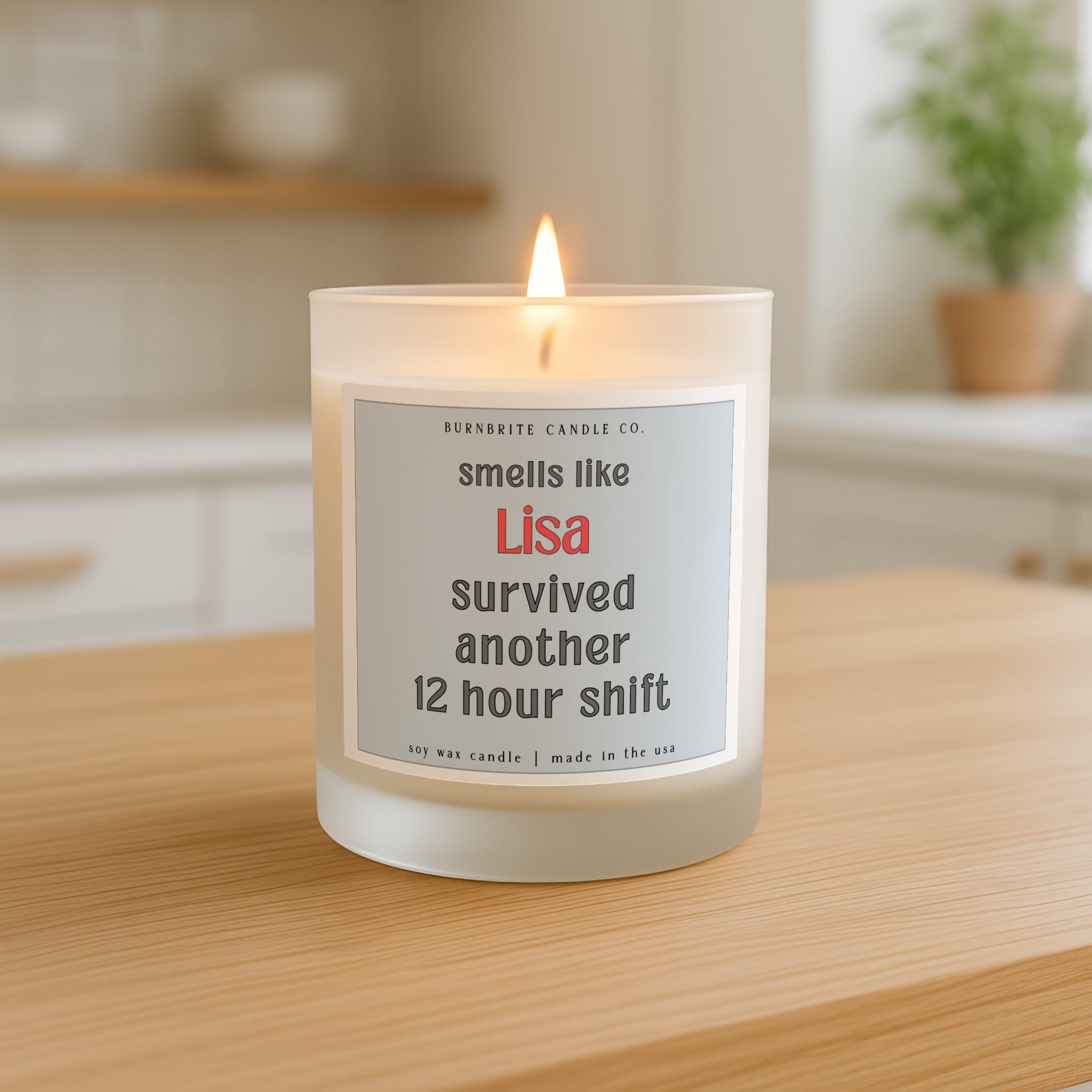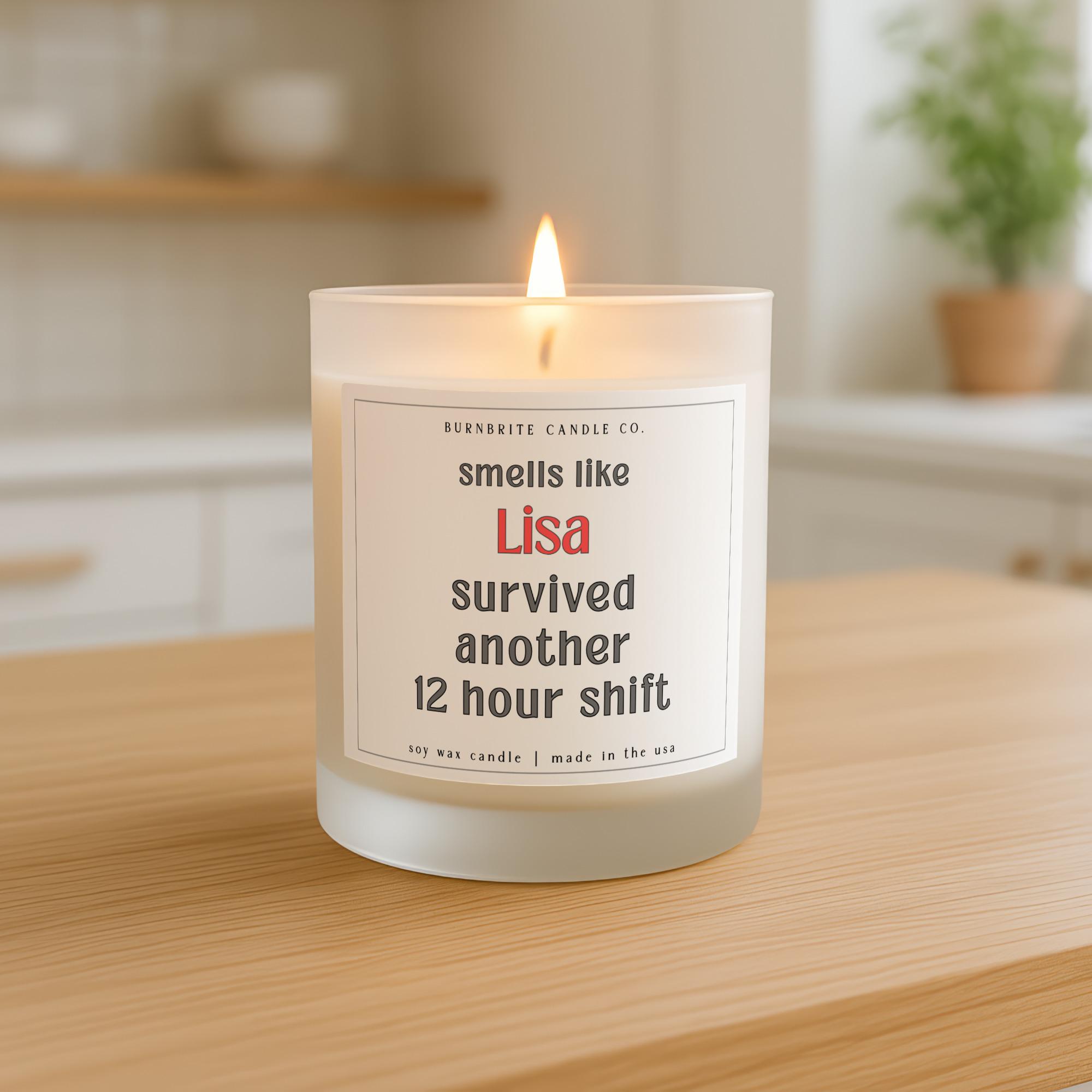 Custom Name 12 Hour Shift Scented Candle, Funny Hard Worker Appreciation Gift for Nurse, Doctor, Co-worker