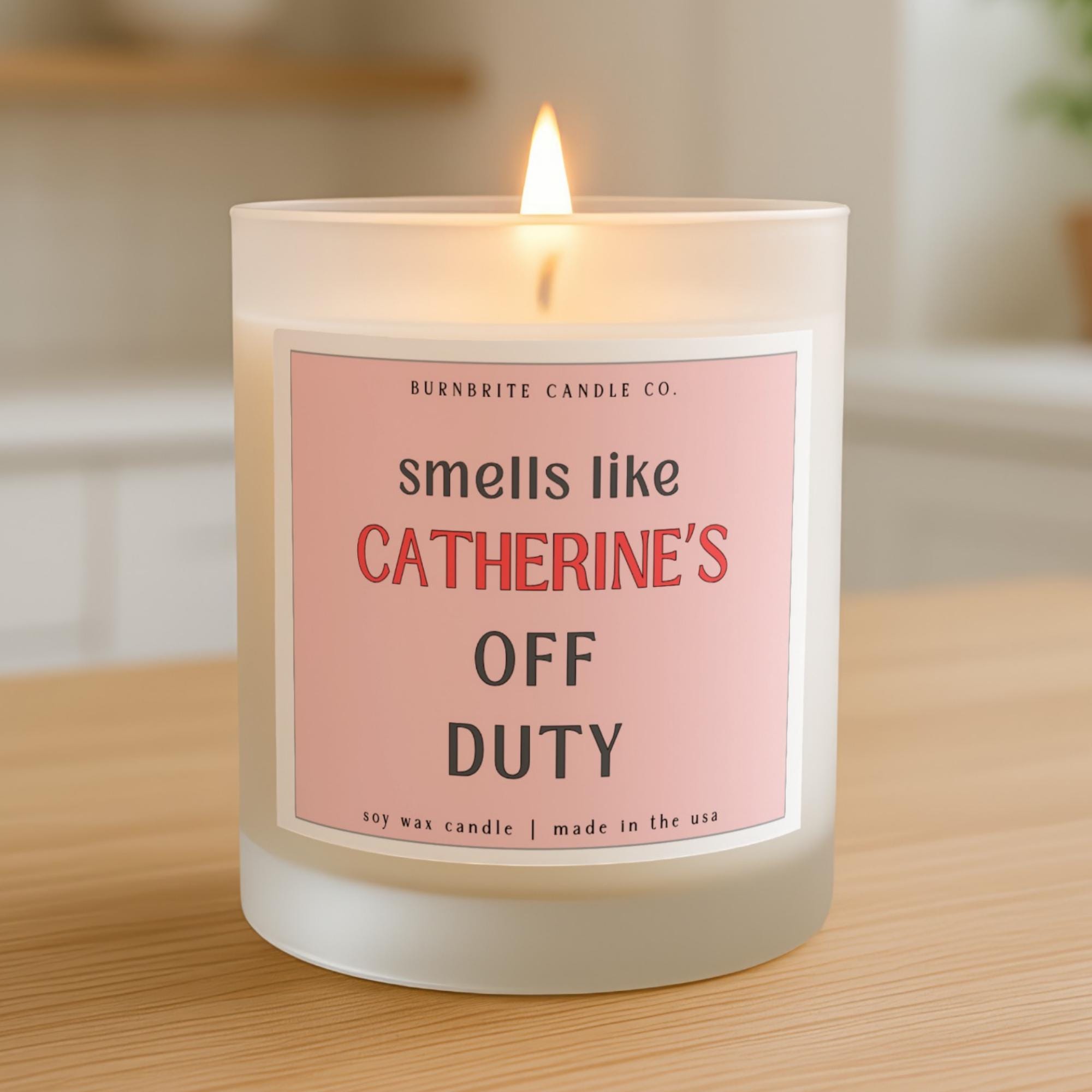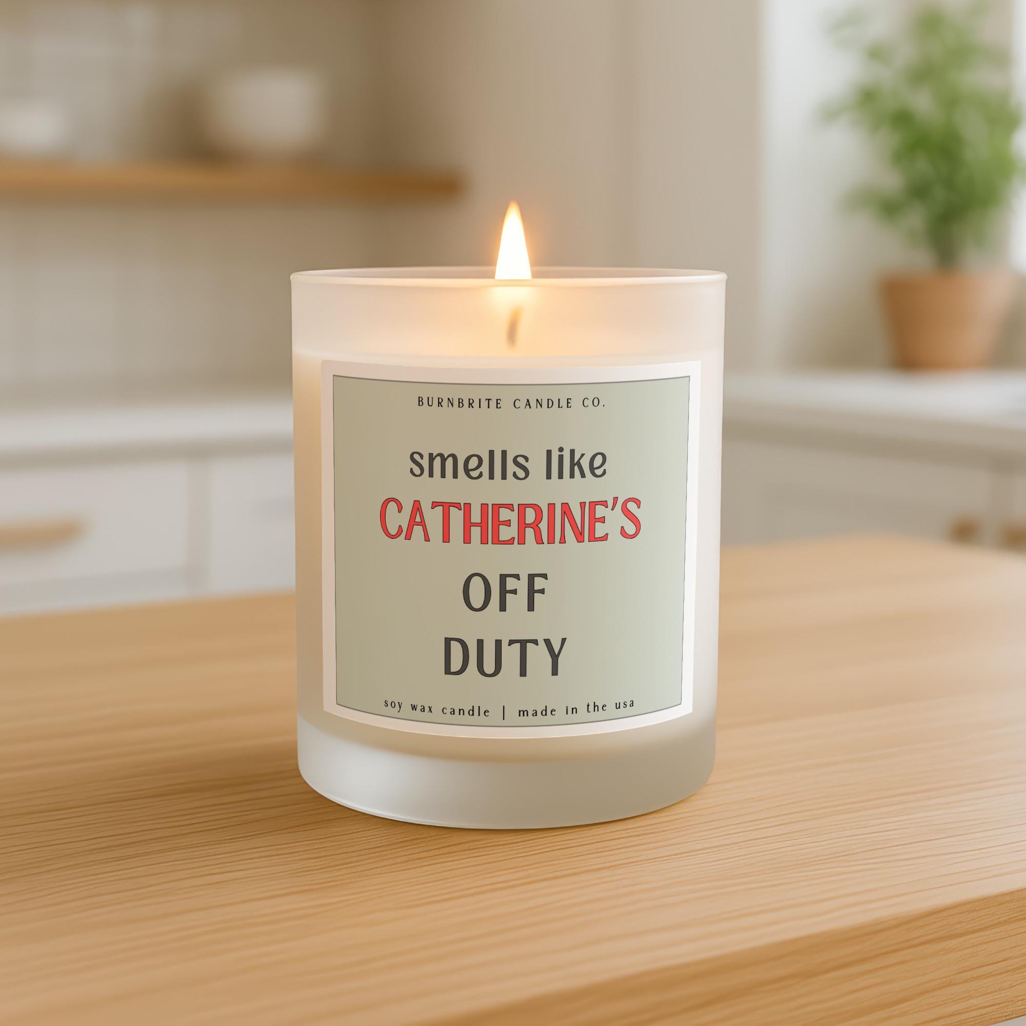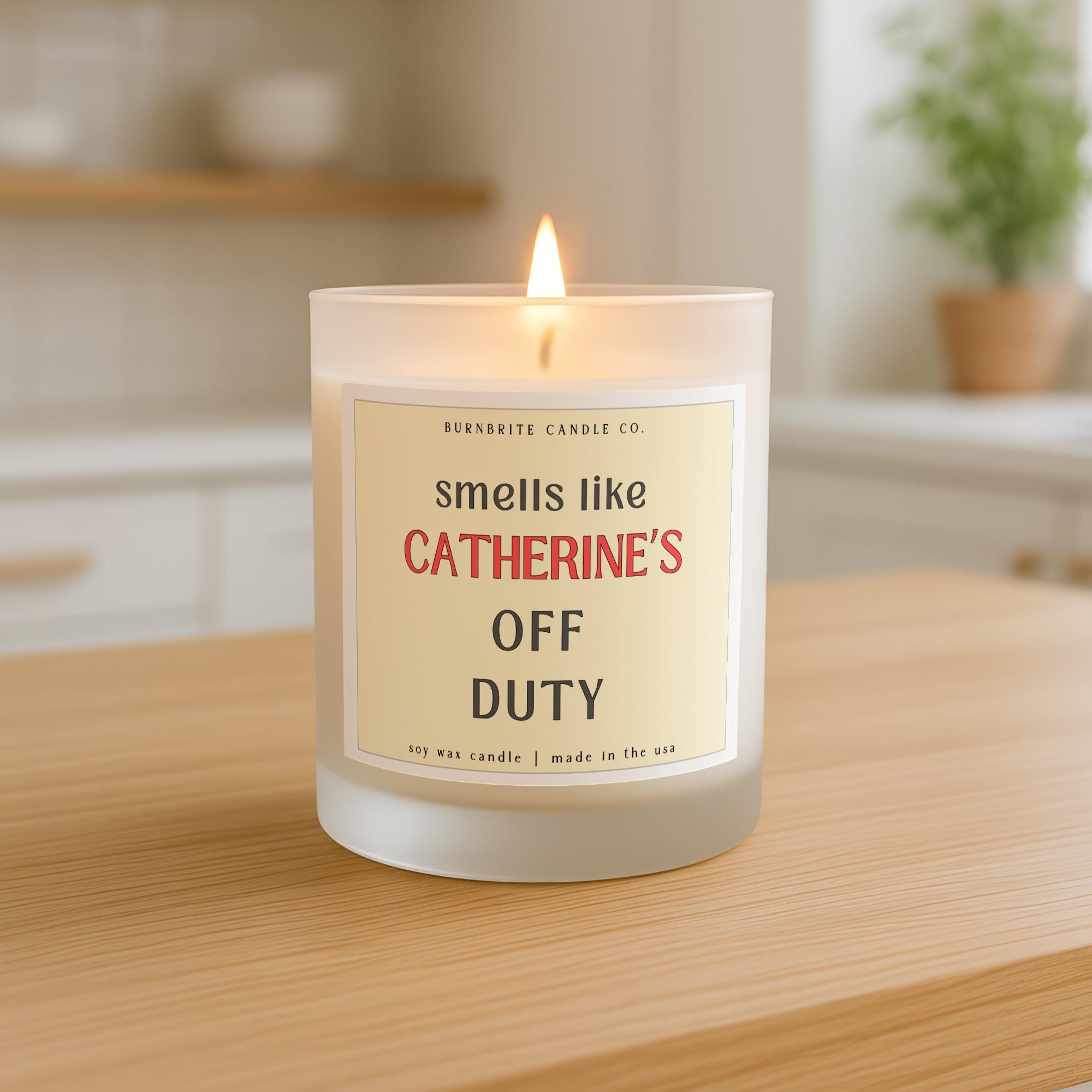 Personalized Off Duty Scented Candle | Custom Name Relaxing Soy Wax Candle Gift for Her | Funny Self Care Spa Day Gift