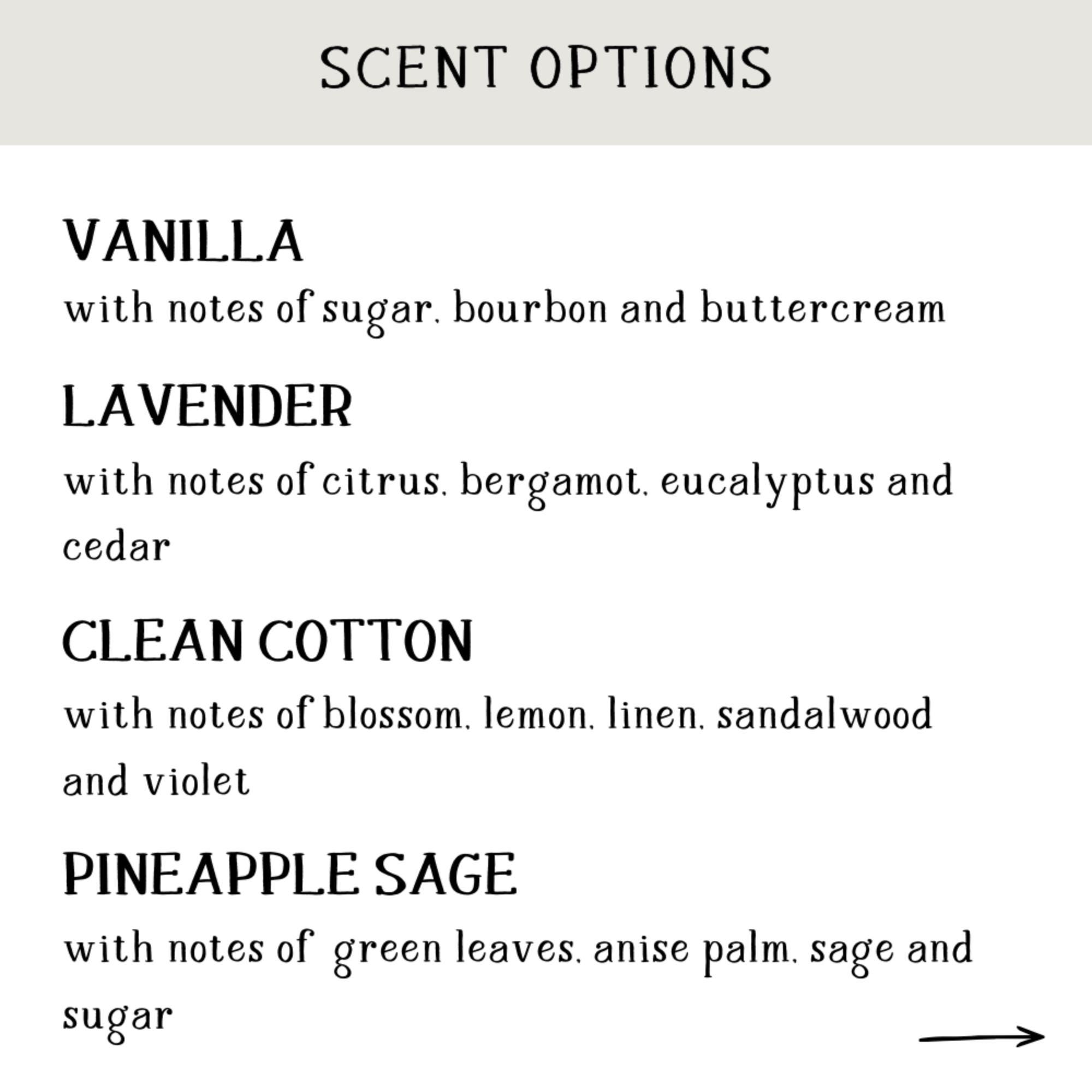 Each of our candles is hand-poured in Spokane, WA and are crafted using a natural soy wax blend, high-quality phthalate-free fragrances enriched with essential oils, and clean-burning cotton wicks. The soy wax offers an eco-friendly alternative to paraffin, ensuring an even burn and a strong bond with our non-toxic scents for a long-lasting, luxurious aroma. Every candle is carefully boxed in a white branded package before being prepared for shipment.