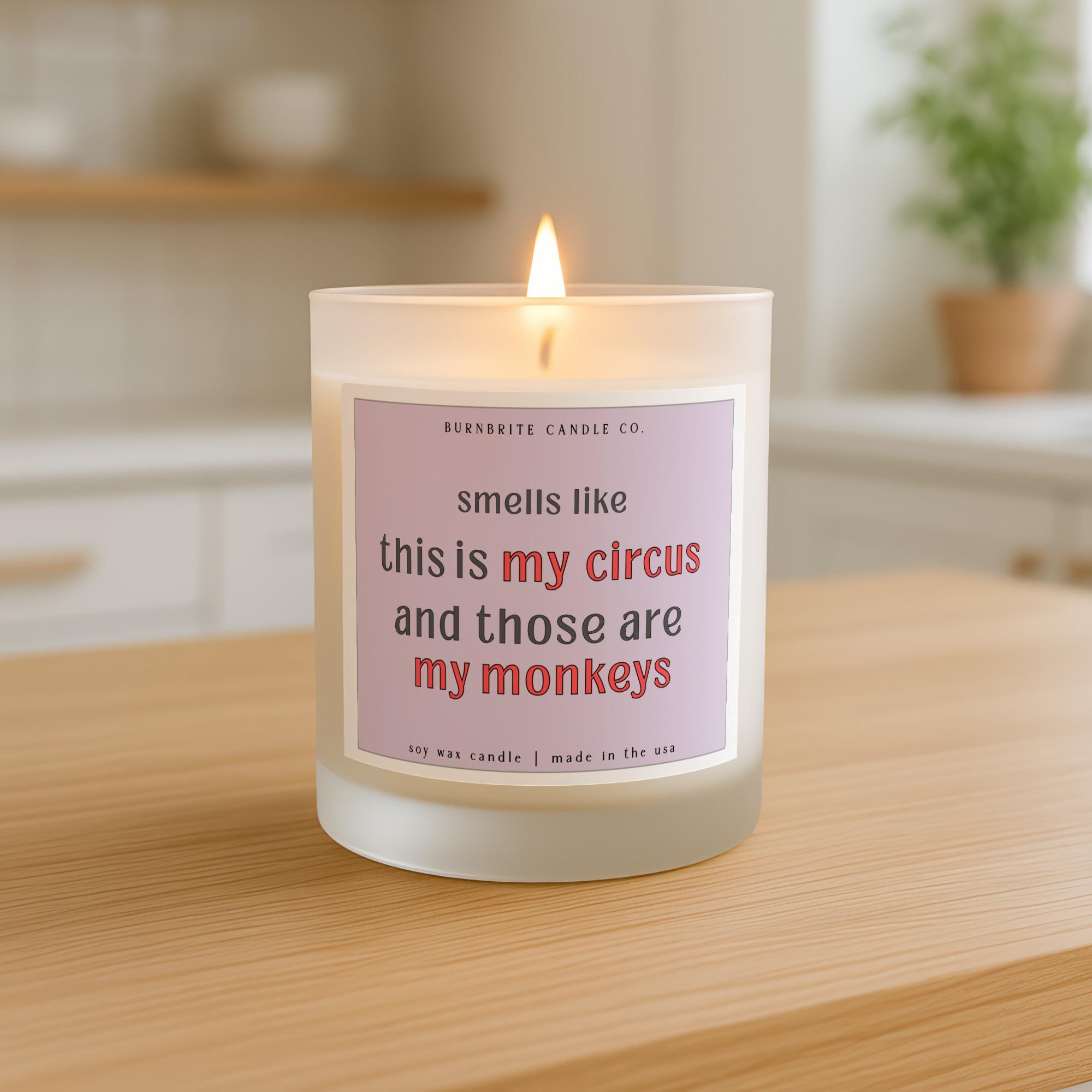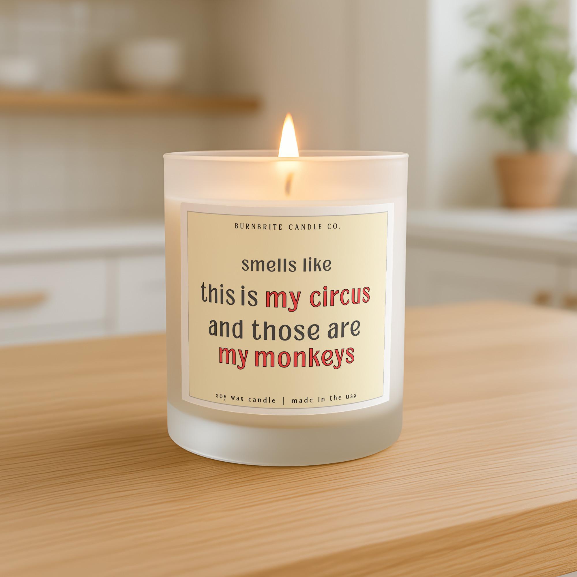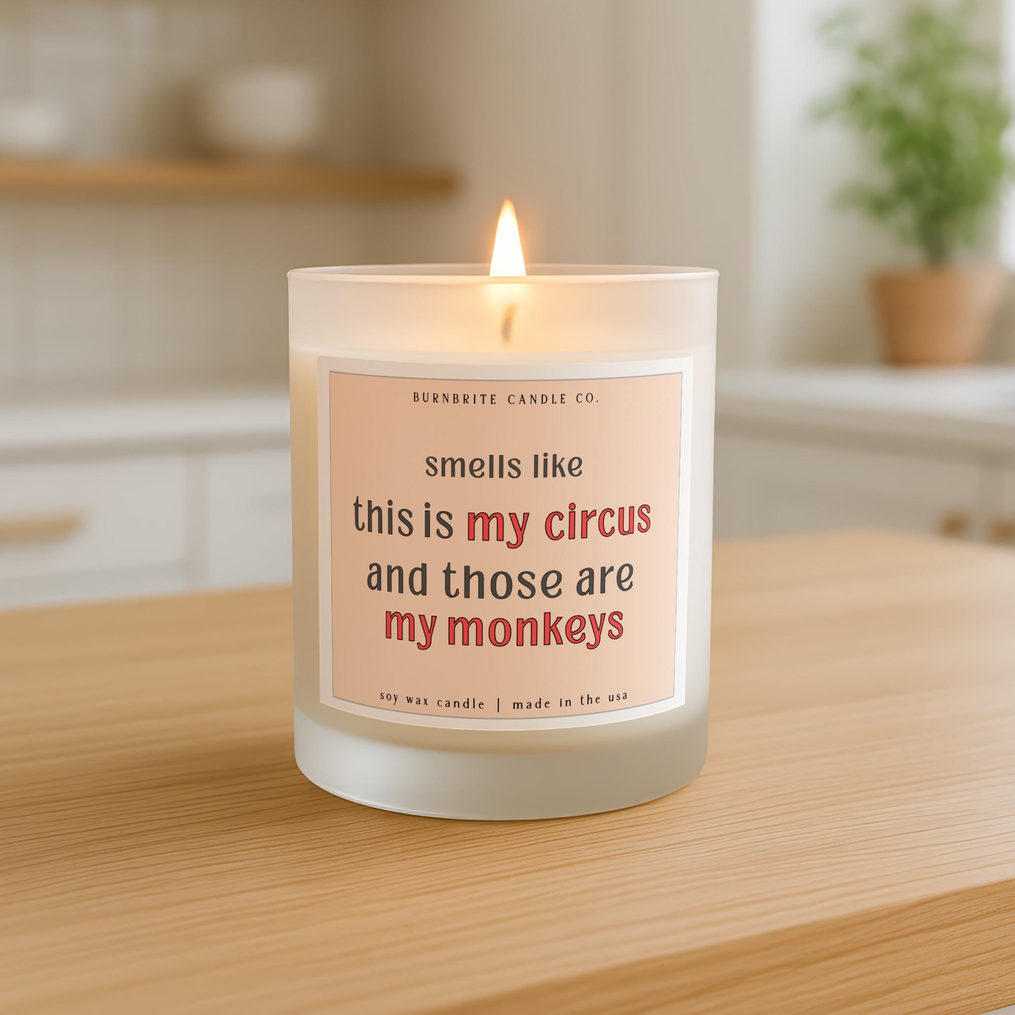 My Circus My Monkeys Scented Candle, Funny Quote Gift for Mom Life, Witty Soy Wax Candle for Her, Humorous Present