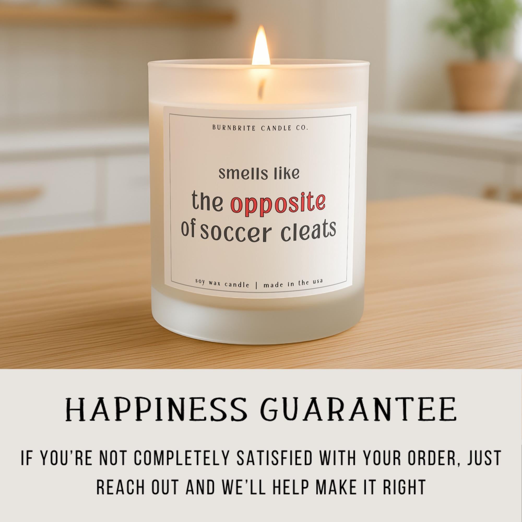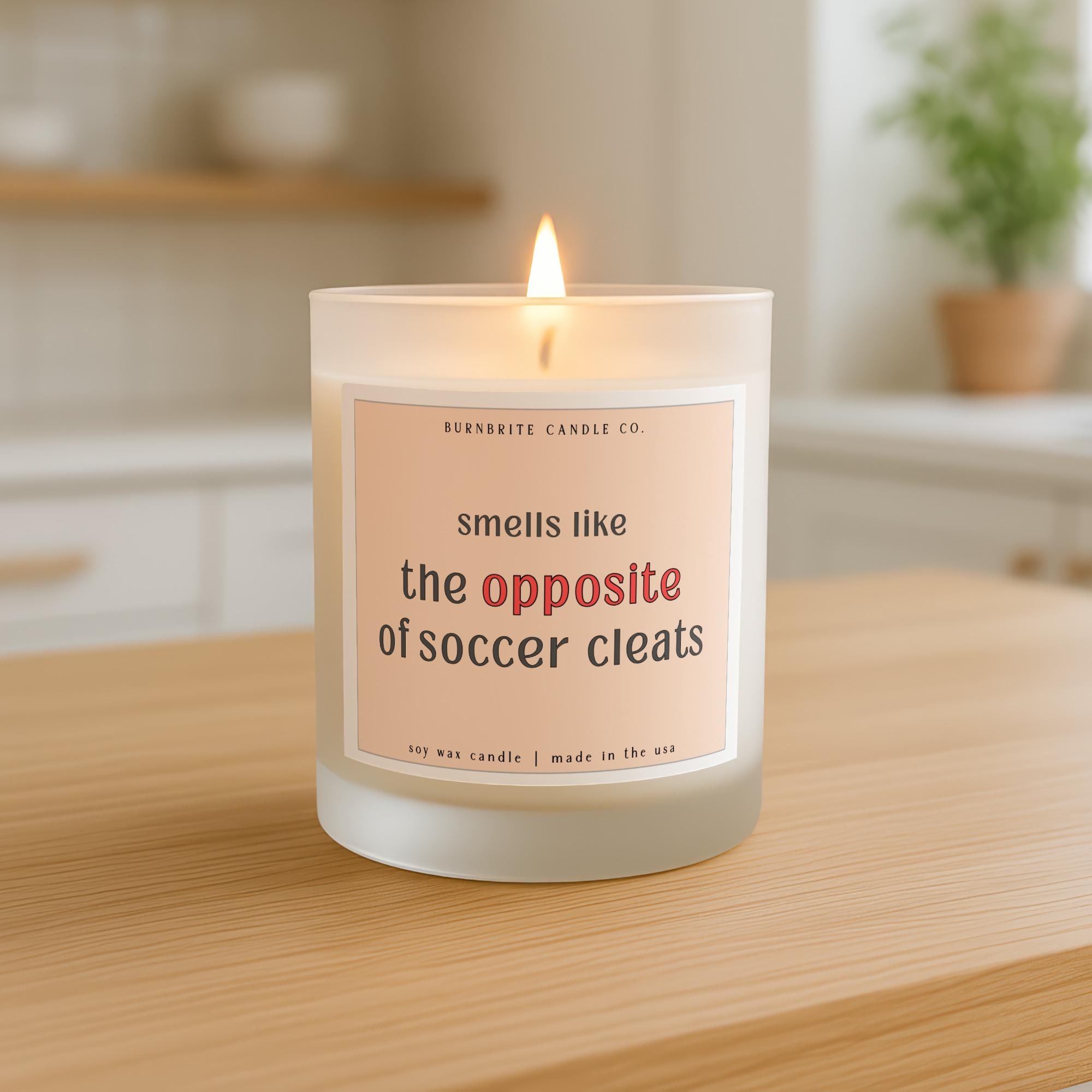 Smells Like Opposite of Soccer Cleats Scented Candle | Funny Soccer Mom Gift, Dad Gift, Humorous Soy Wax Candle