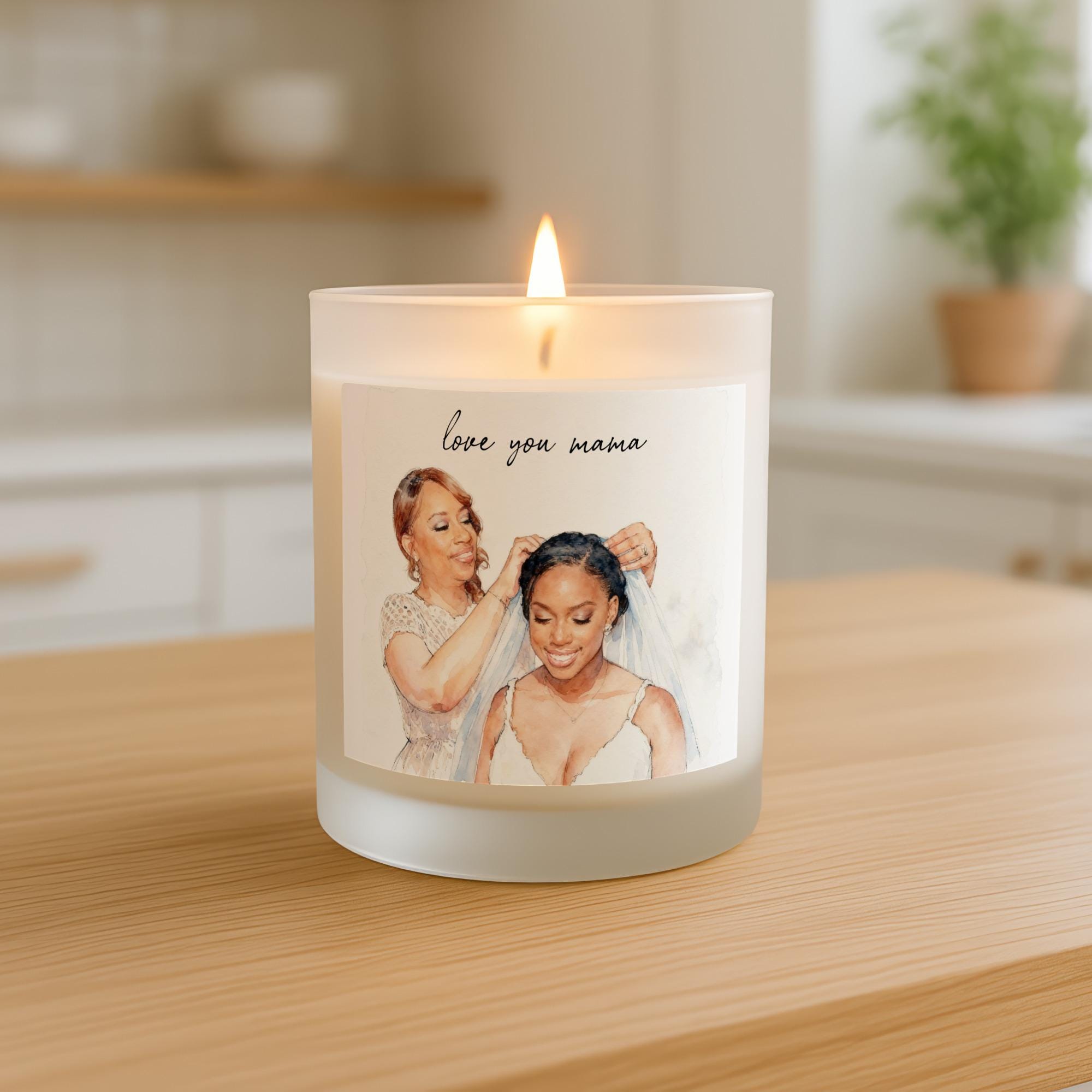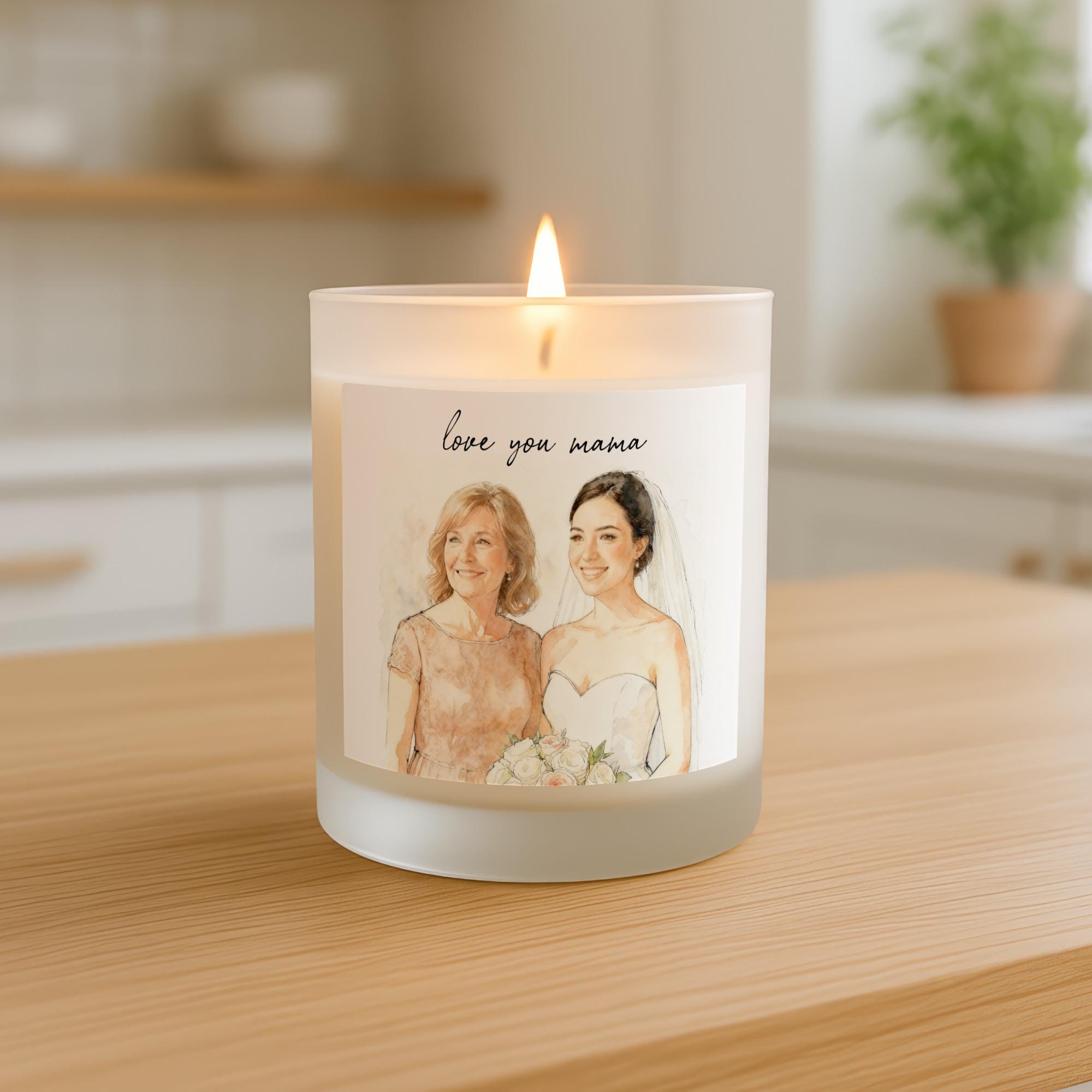 Personalized Mother of the Bride Scented Candle, Custom Wedding Portrait Watercolor Illustration Candle, Gift for Mom for Mother's Day