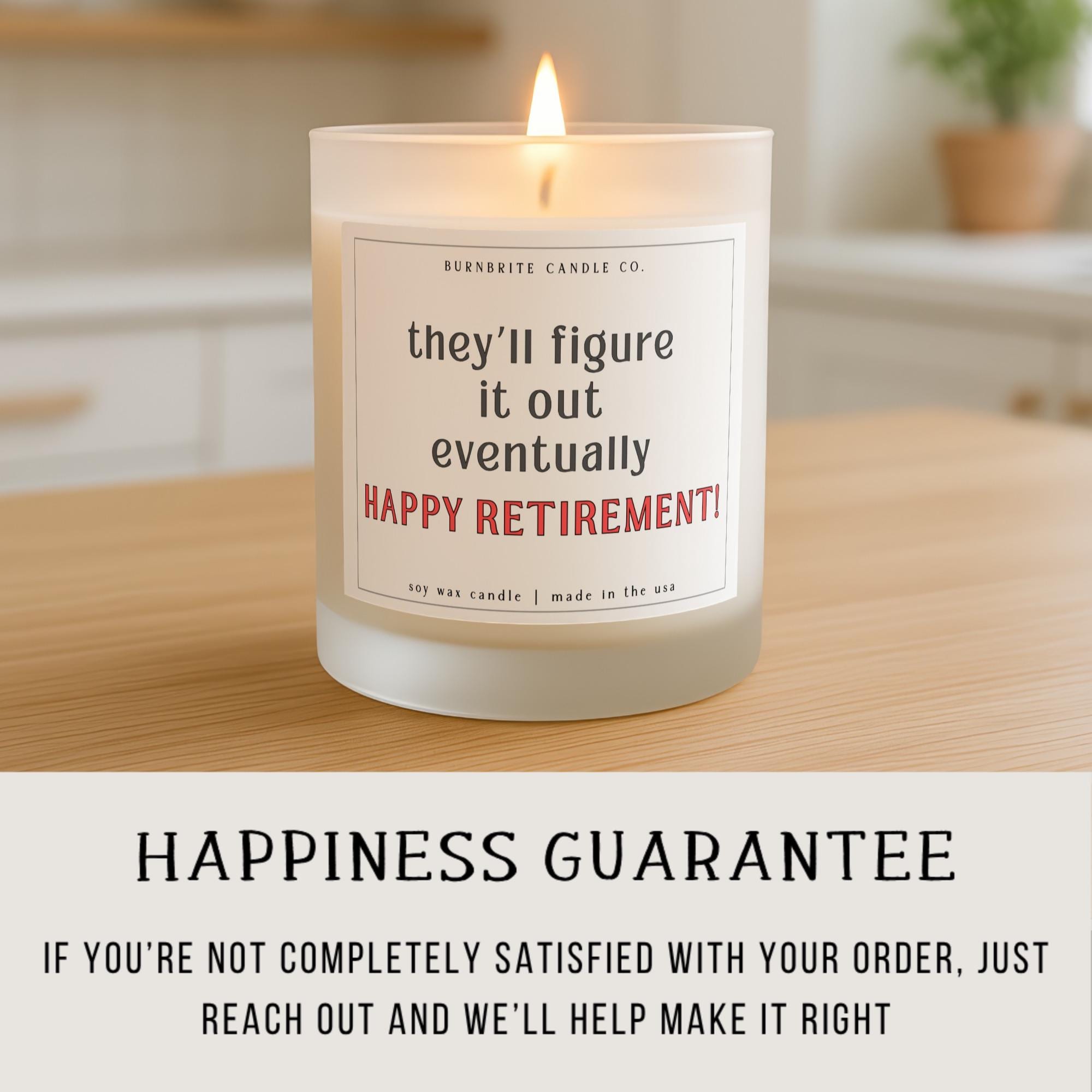 Happy Retirement Scented Candle, Funny Retirement Gift for Coworker & Boss, Witty Quote Retirement Party Decor Soy Wax Candle