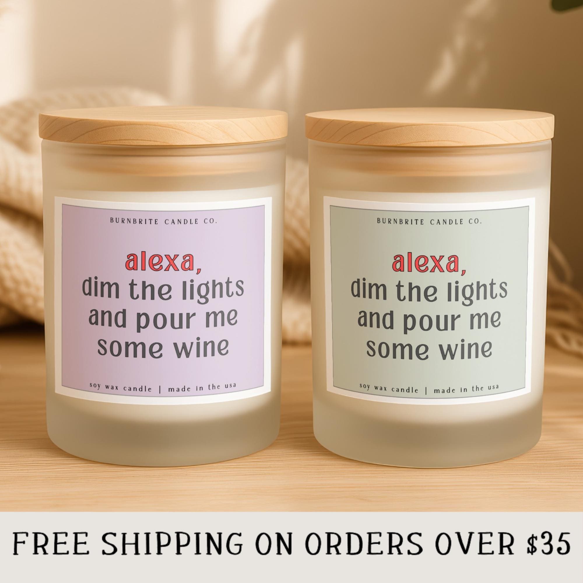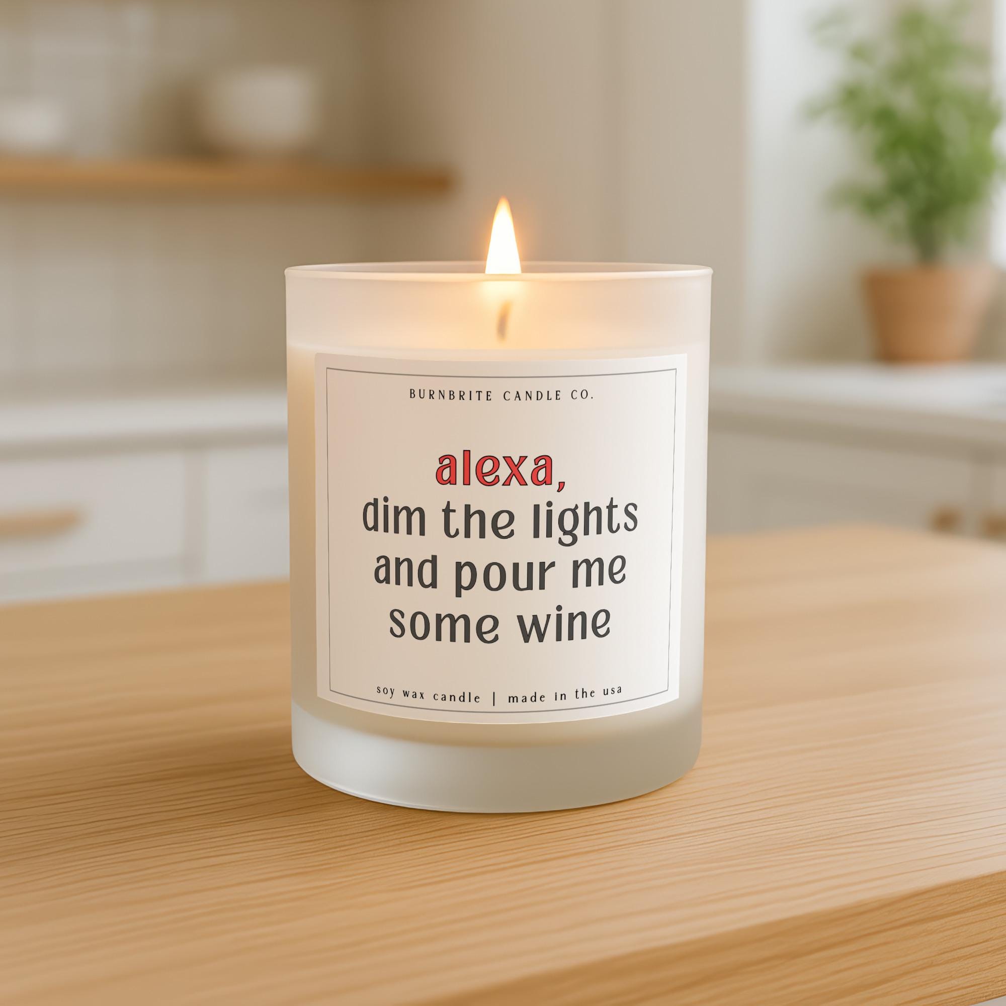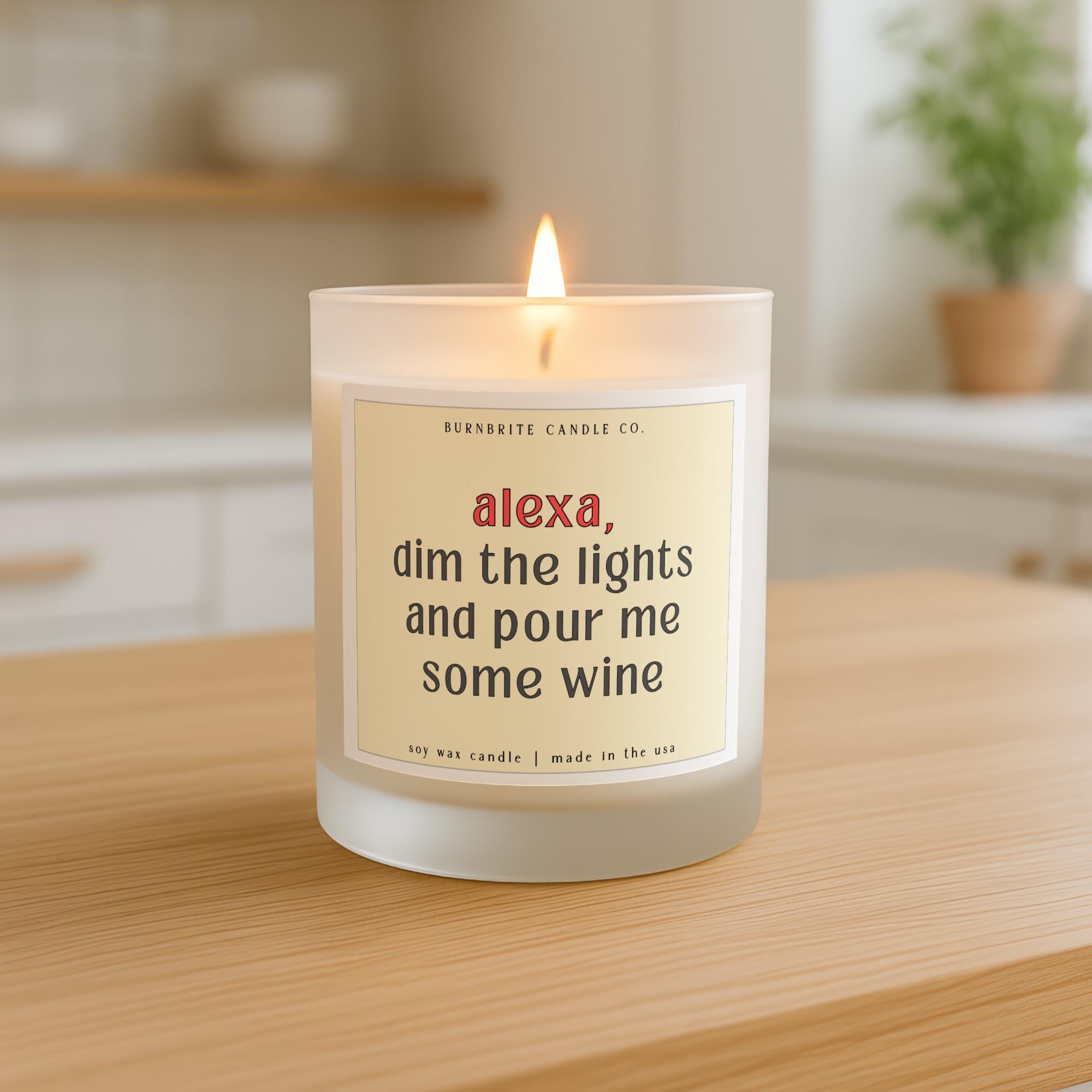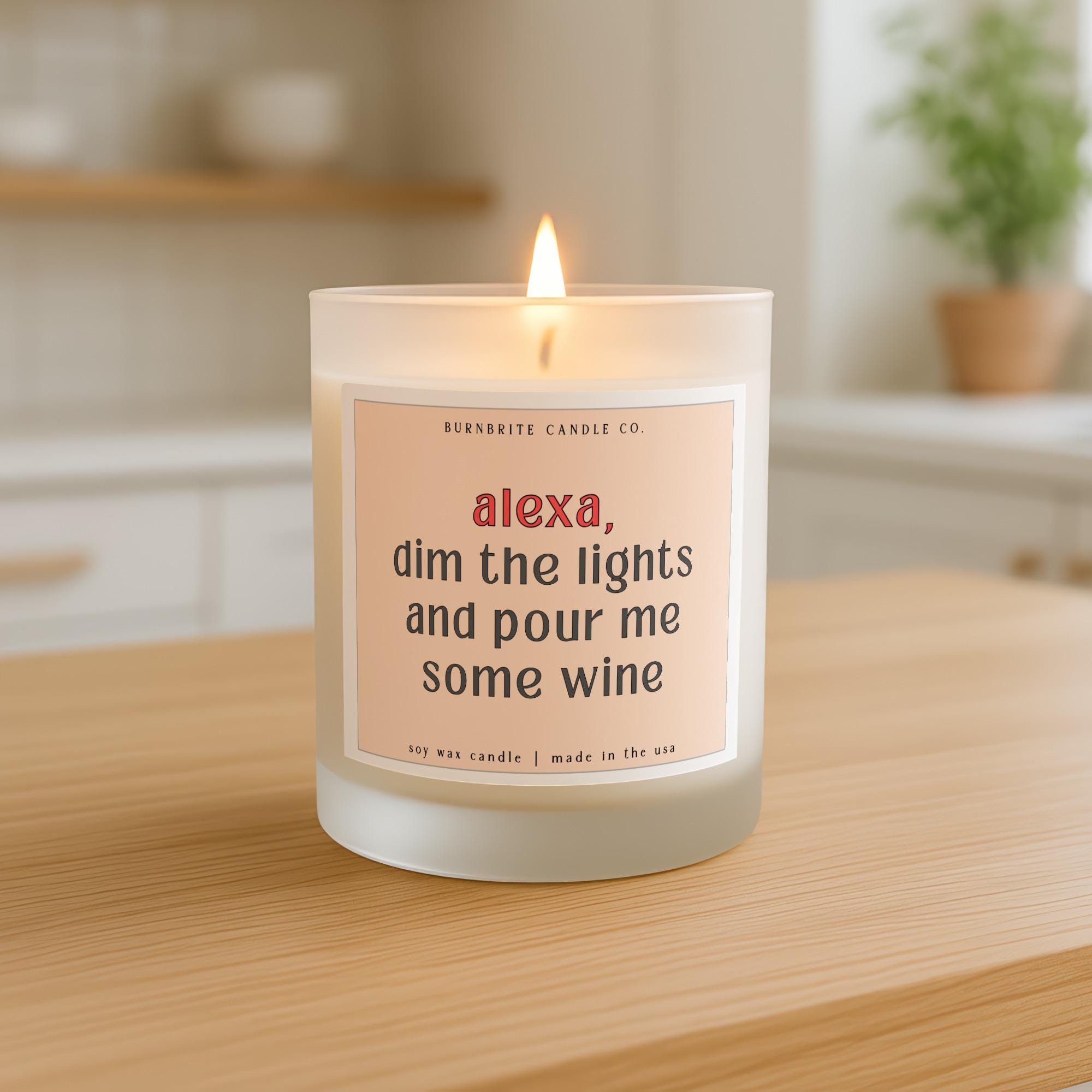 Alexa Dim The Lights Pour Me Some Wine Scented Candle, Funny Wine Lover Gift, Cozy Home Decor Soy Candle, Witty Quote Candle