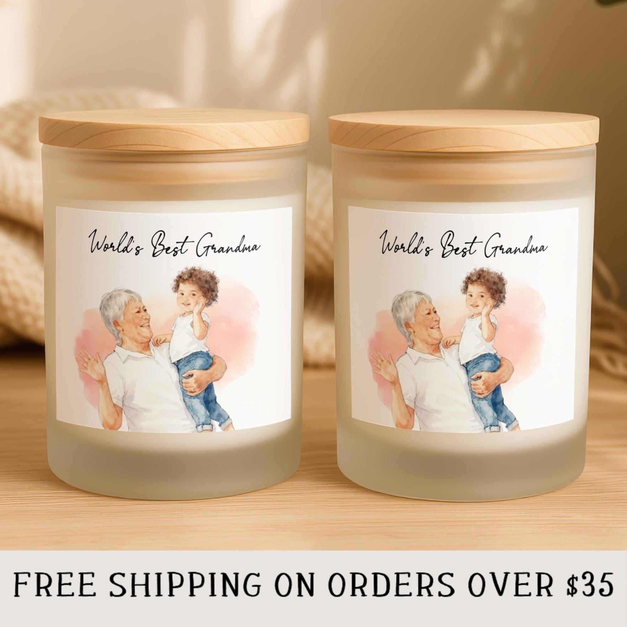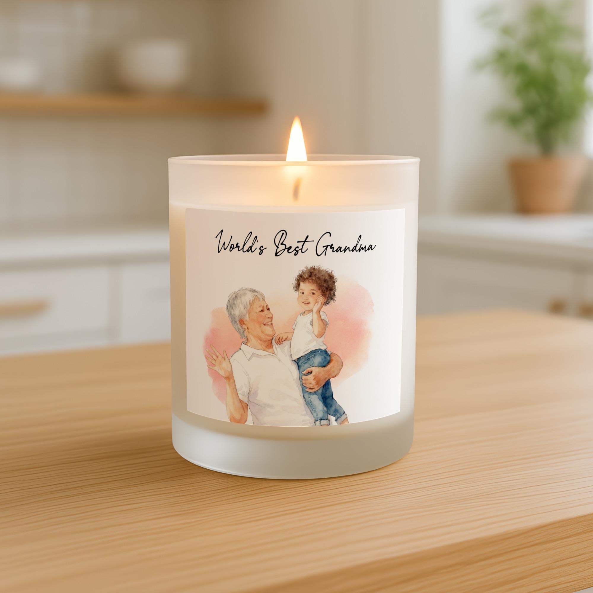 World's Best Grandma Scented Candle, Watercolor Portrait Gift for Nana, Thoughtful Grandparent Birthday Keepsake