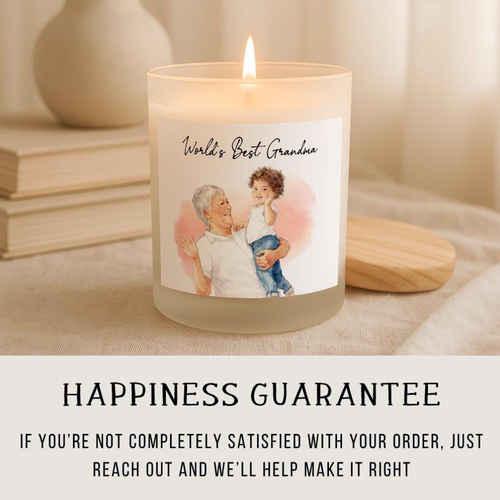 Celebrate the 'World's Best Grandma' with this heartwarming scented candle, a perfect gift for Mother's Day or her birthday. This beautiful candle captures the essence of grandmotherly love with its charming watercolor illustration of a grandma and child. It's a sentimental keepsake designed to bring warmth and joy to any beloved grandma, nana, or abuela. Ideal for Grandparent's Day, Christmas, or a thoughtful 'just because' present to show your deep appreciation.